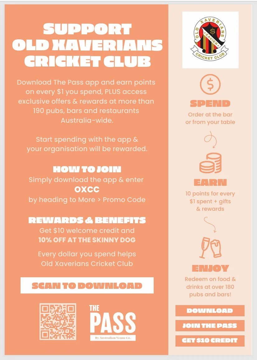 Support the Old Xavs Cricket Club. Support & Save at the Skinny Dog.